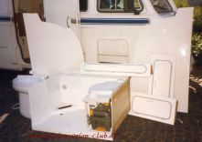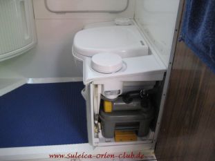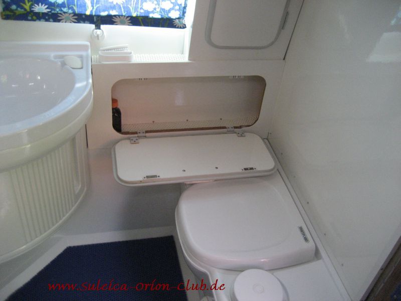 Also: Porta-Potti raus, Fußboden neu und eine Monomatic- Toilette eingebaut. – Aber welche Fehlentscheidung !! Toilette leeren ? In den nächsten Waldweg ,- Niemand in der Nähe ??,- Abflusshebel ziehen und weg. Entsorgungsstationen wie heute gab es damals noch nicht