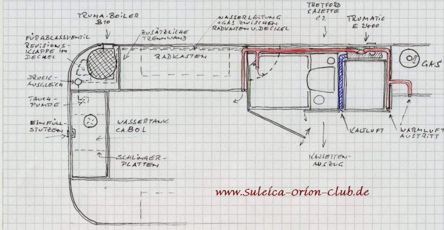 Es müssen her: Abwasserbehälter für Grauwasser, Frischwassertank, Gas- WW-Boiler, automatische Heizung, Duschtasse, Kasettentoilette, neues Waschbecken mit Schlauchbrause usw..